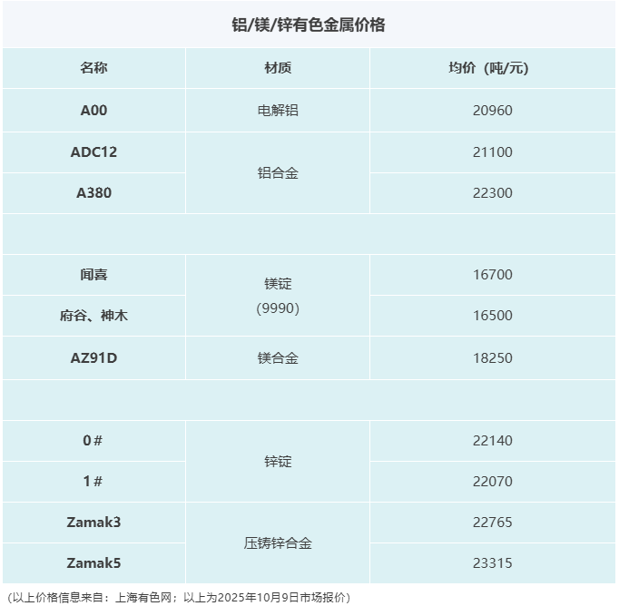 壓鑄早報2025/10/10星期五