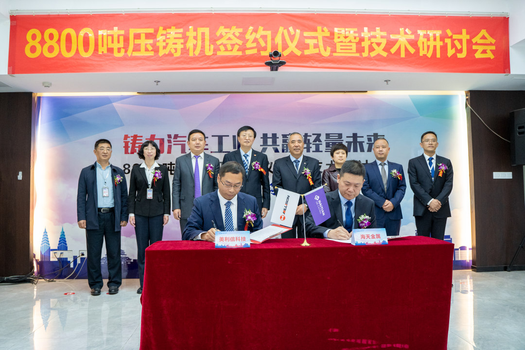 4月10日,美利信科技向海天金屬購買了一套HDC8800噸超大型壓鑄機,并于美利信現(xiàn)代工業(yè)園隆重舉行了簽約儀式暨技術研討會。