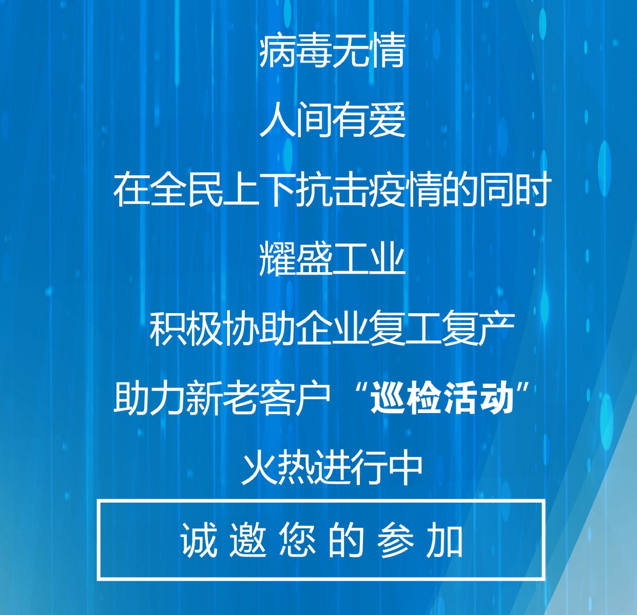 設(shè)備長時間的停機會導致各方面出現(xiàn)故障,企業(yè)復工后,為了關(guān)注客戶的生產(chǎn),全心協(xié)助我們的新老客戶,耀盛工業(yè)設(shè)立“客服中心”為每一位客戶進行免費點檢。