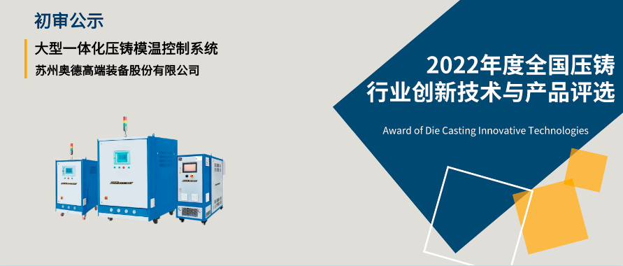 蘇州奧德研發(fā)的“汽車結(jié)構(gòu)件專用200°C水式物聯(lián)模溫機(jī)”榮獲“2021年度壓鑄行業(yè)創(chuàng)新技術(shù)”稱號(hào)。