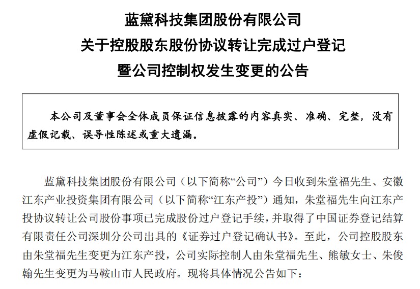藍黛科技表示,江東產投基于對公司主營業務及內在價值的認可,看好公司所處行業及未來發展前景,因此擬取得公司控制權。