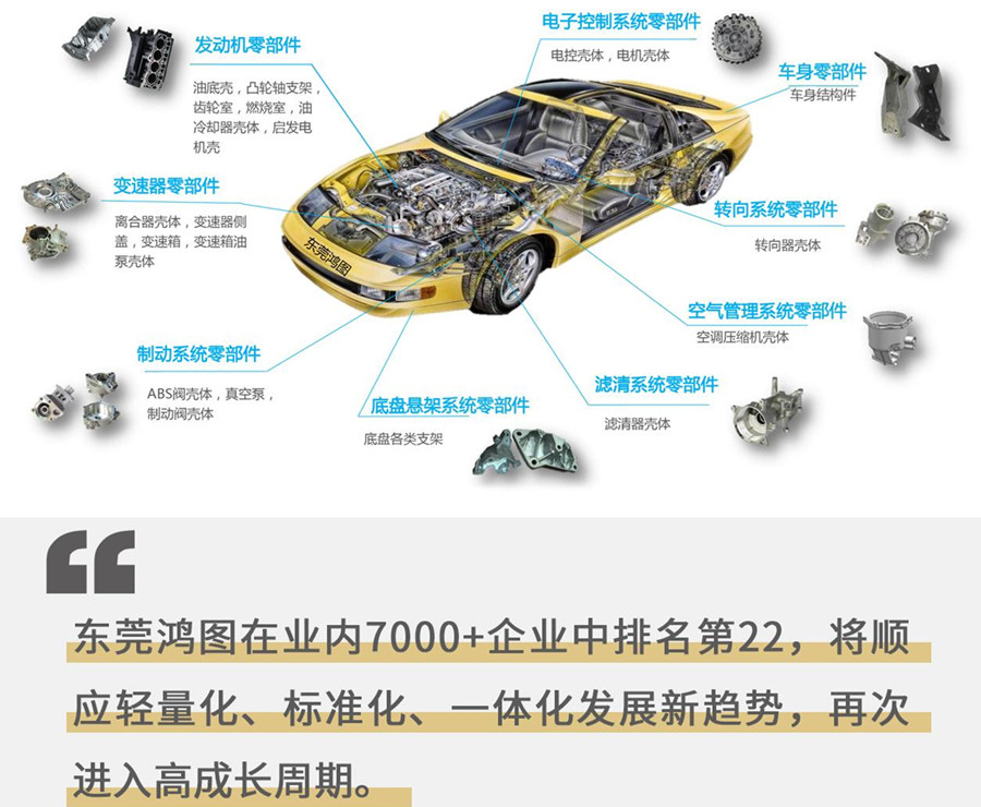 繼去年南通鴻圖一期竣工投產后,日前武漢宏圖舉行奠基儀式,顯然母公司廣東鴻圖加快了華東、華中車用鋁合金壓鑄件市場的布局,以把握中國全民汽車時代的商機。