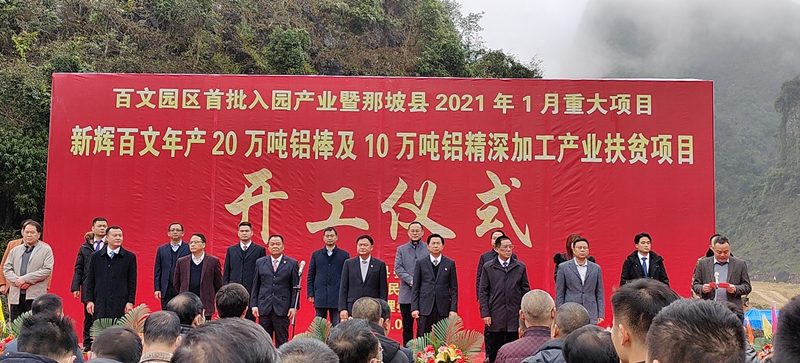 1月6日,那坡縣2021年1月重大項(xiàng)目--新輝百文年產(chǎn)20萬(wàn)噸鋁棒及10萬(wàn)噸鋁精深加工產(chǎn)業(yè)扶貧項(xiàng)目開(kāi)工。