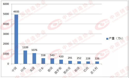 2018年,全球鑄件總產量超過1.127億噸,比2017年增長了約250萬噸。