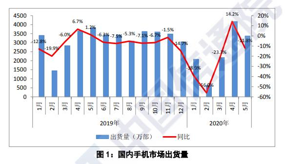 中國信通院數據顯示,5月國內手機市場總體出貨量3375.9萬部,同比下降11.8%。