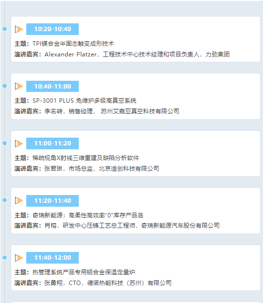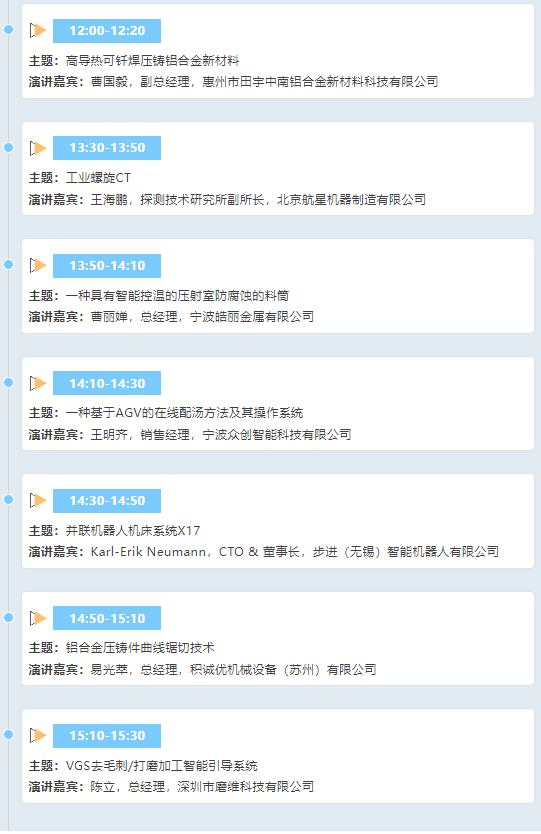 創新技術:VGS去毛刺/打磨加工智能引導系統 榮獲“2025年度全國壓鑄行業創新技術”稱號的企業將在7月16日(10:20-15:30)上海新國際博覽中心N3館 N3D10汽車輕量化論壇區舉辦的“2025年度創新技術及產品發布會”活動中現場宣講該項創新技術及產品,敬請關注! 演講日程 Agenda