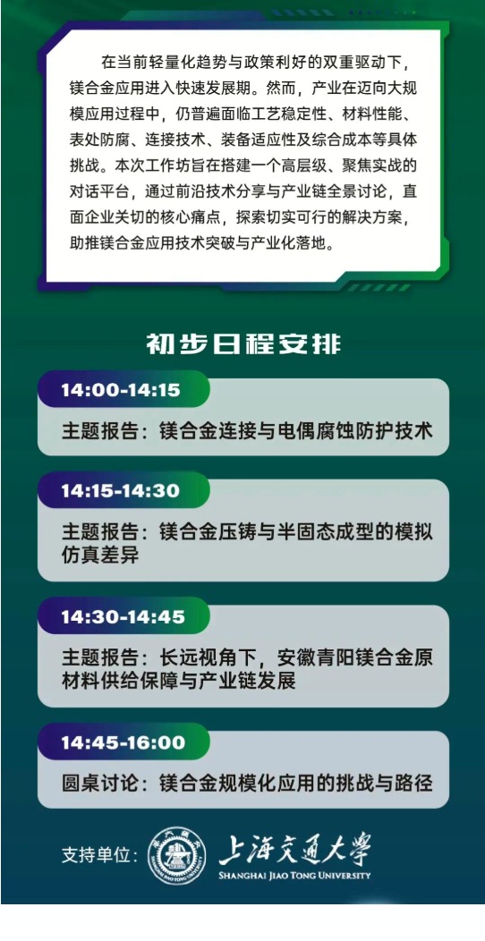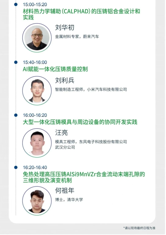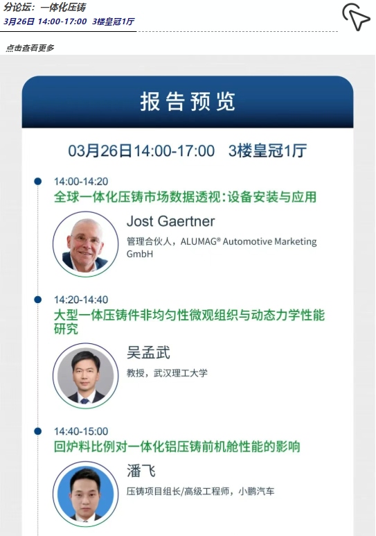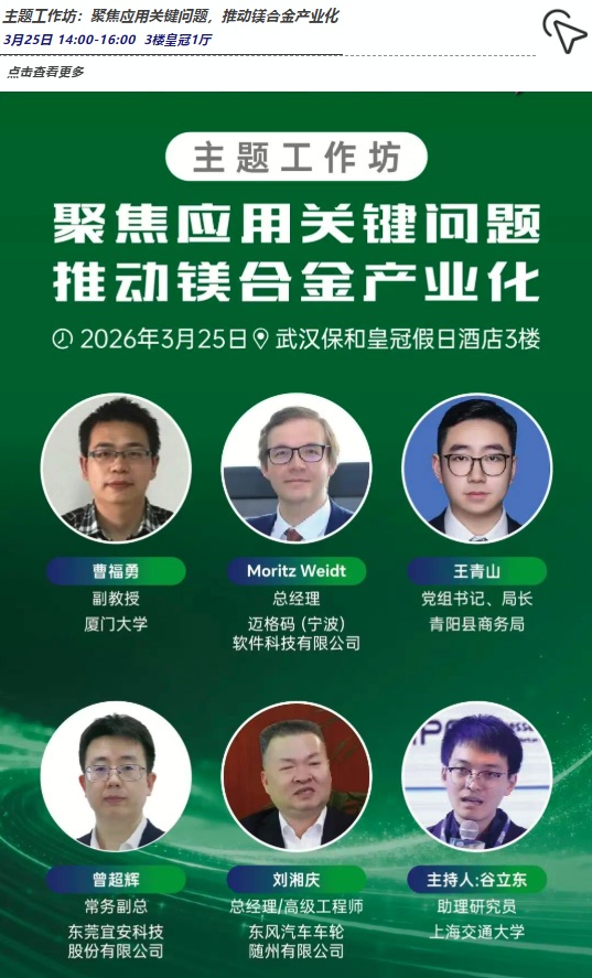 本次會議會議以“鋁”穩行遠,“鎂”啟新程為主題,旨在匯聚全球學術界、企業界、車廠等各方力量,以技術交流推動“鋁穩基業,鎂開新局”的產業格局,共同繪制輕量化時代的全球壓鑄產業新藍圖。誠邀壓鑄同仁蒞臨參會!