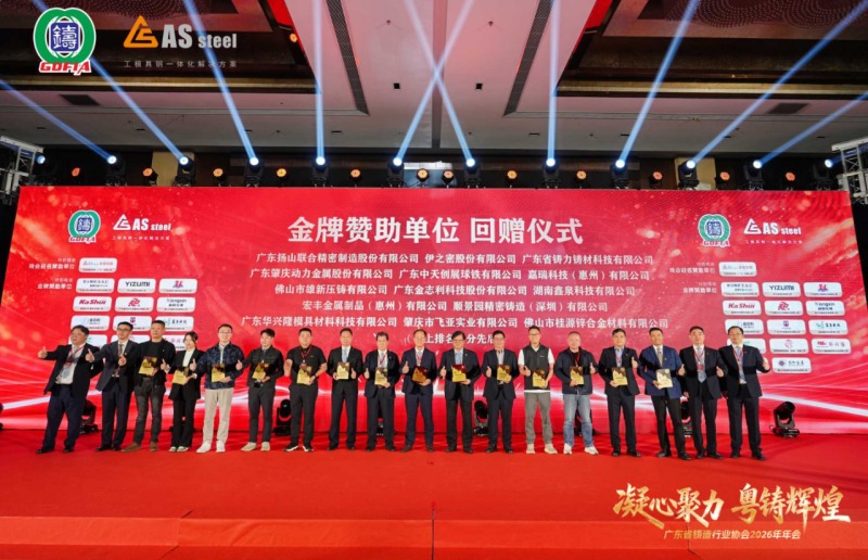 本次年會(huì)的圓滿舉辦,離不開行業(yè)優(yōu)秀企業(yè)的鼎力支持。廣東揚(yáng)山聯(lián)合精密制造股份有限公司、伊之密股份有限公司、廣東省鑄力鑄材科技有限公司、廣東肇慶動(dòng)力金屬股份有限公司、廣東中天創(chuàng)展球鐵有限公司、嘉瑞科技 (惠州) 有限公司、佛山市雄新壓鑄有限公司、廣東金志利科技股份有限公司、湖南鑫泉科技有限公司、宏豐金屬制品 (惠州) 有限公司、順景園精密鑄造 (深圳) 有限公司、廣東華興隆模具材料科技有限公司、肇慶市飛亞實(shí)業(yè)有限公司、佛山市桂源鋅合金材料有限公司作為本次年會(huì)金牌贊助單位,傾情助力盛會(huì)圓滿舉行。主辦方特為各金牌贊助單位回贈(zèng)紀(jì)念禮品,致謝厚愛與支持。