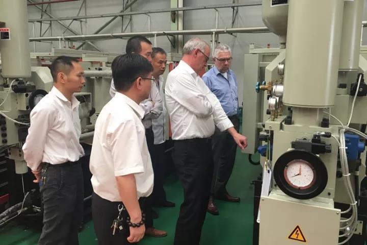 來自歐洲的客戶前來考察固德威工廠 據(jù)介紹,“一種鎂合金冷室壓鑄機(jī)的快壓射截止機(jī)構(gòu)”是廣東固德威的一項(xiàng)創(chuàng)新型發(fā)明專利技術(shù),使用了該技術(shù)的GDC300SM冷室壓鑄機(jī),在很小的插裝閥開度下,便可達(dá)到所需的建壓時(shí)間15ms。在生產(chǎn)鑄件時(shí),更快速的建壓過程,同時(shí)閥開度范圍更廣,更易控制。運(yùn)用該新技術(shù),使得生產(chǎn)小件鑄件時(shí),在較小的閥開度情況下,就可以生產(chǎn)出高合格率的鑄件,避免了由于閥開度過大,導(dǎo)致小鑄件披風(fēng)、毛刺過多的問題。