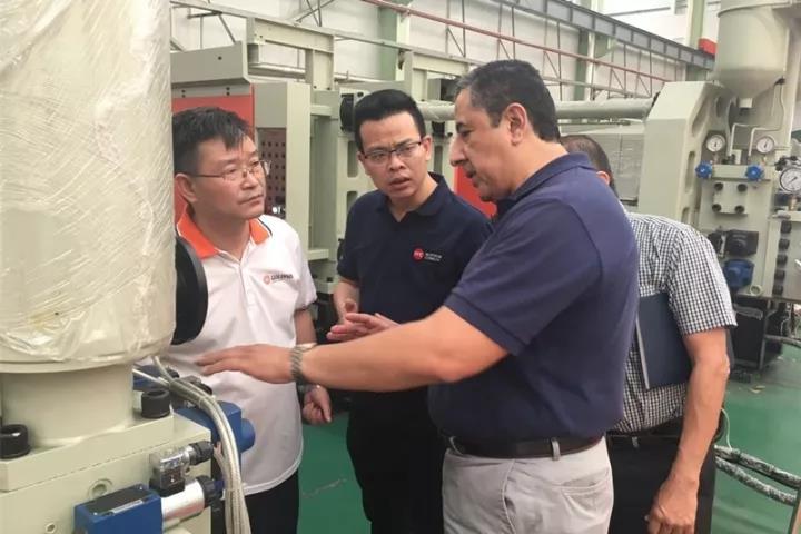 南美洲的客戶前來考察固德威工廠 廣東固德威技術(shù)部經(jīng)理雷順和介紹說:“除了快壓射截止技術(shù),GDC系列還采用多項(xiàng)專利技術(shù)。全面優(yōu)化的控制程序和油路設(shè)計(jì),精準(zhǔn)斜率控制,比例閥輸出線性下降,任意位置開合模停車更平穩(wěn)、更準(zhǔn)確,重復(fù)精度在1mm以內(nèi),節(jié)省開合模時(shí)間,提高生產(chǎn)效率;優(yōu)化伺服控制系統(tǒng)及程序,解決伺服電機(jī)、齒輪泵頻繁受沖擊的問題,大大減少受沖擊次數(shù),延長伺服電機(jī)的壽命,同等硬件配置狀況下,可延長50%-60%使用壽命。相比同噸位的機(jī)型,GDC300的儲(chǔ)能器容積增大25%,可生產(chǎn)快速行程更長的壓鑄件,因此,適應(yīng)面更廣,可生產(chǎn)復(fù)雜、厚薄壁的壓鑄件。”這款機(jī)型尤其適用于手機(jī)中板的生產(chǎn)。