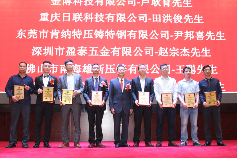 新會員頒贈證書盾牌 多年來,在全體會員共同努力下,香港鑄造業總會各項工作不斷取得新成績,會員隊伍亦在不斷發展壯大。會上,劉相尚會長為東莞市耀盛工業爐有限公司、佛山市南海創利有色金屬制品有限公司、金博科技有限公司、重慶日聯科技有限公司、東莞市肯納特壓鑄特鋼有限公司、深圳市盈泰五金有限公司、佛山市南海雄新壓鑄有限公司、東莞市鋼權金屬實業有限公司8家新入會企業頒贈證書盾牌。
