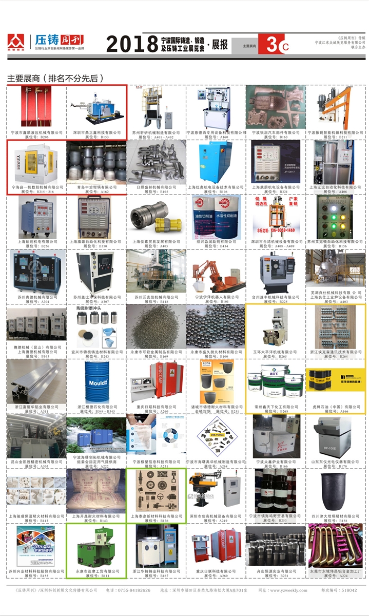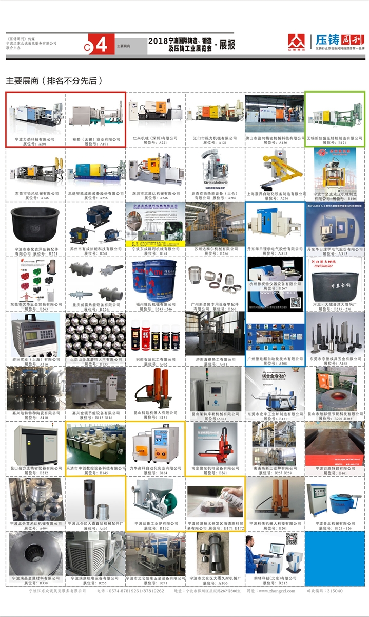 《2018寧波國際鑄造、鍛造及壓鑄工業(yè)展覽會•展報》,由展會主辦方寧波眾誠展覽、《壓鑄周刊》傳媒聯(lián)合推出,展報分四版,第一版內(nèi)容為“2017年中國壓鑄行業(yè)十大新聞“”,第二版為“2018年首季度壓鑄行業(yè)重大新聞”,第三、第四版為展商信息,既可以了解當下最新壓鑄新聞資訊,又能查詢此次展會的參展商信息,具有很高的可讀性,歡迎現(xiàn)場取閱。