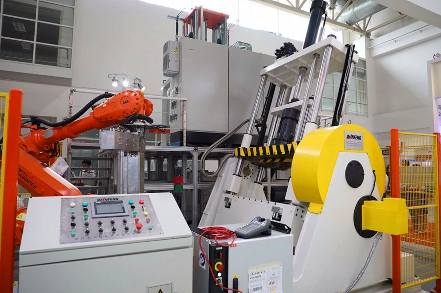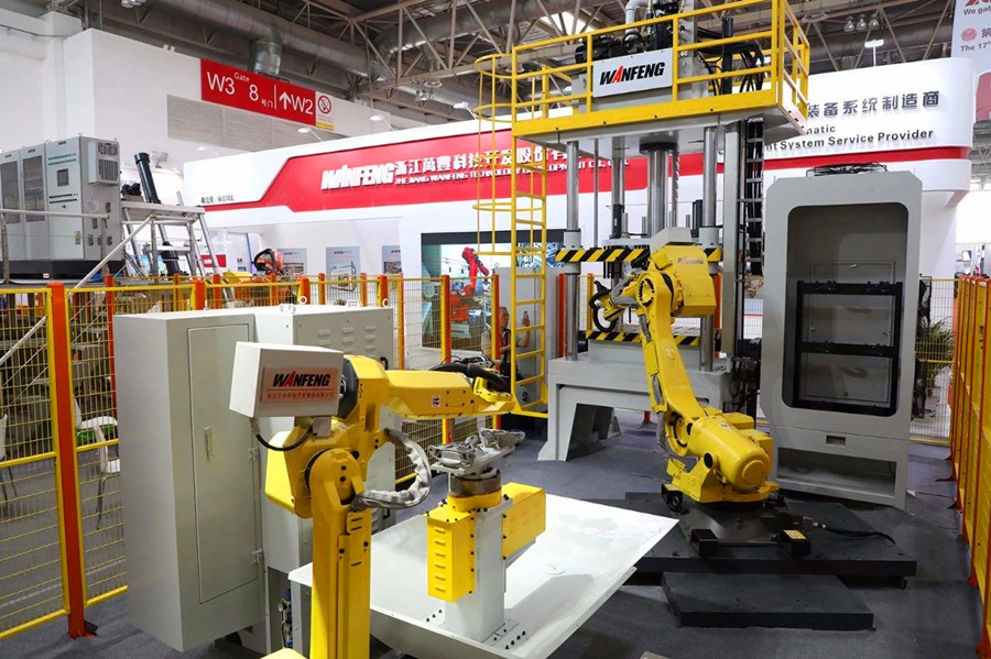 萬豐科技展臺 作為行業領先的輕合金鑄造裝備及自動化系統提供商——浙江萬豐科技開發股份有限公司(“萬豐科技”)為觀眾帶來了新一代連續式低壓鑄造機、智能壓鑄單元、全新伺服電傾轉重力機及機器人澆注系統等創新產品亮相本次展會,展示其在鑄造智能裝備領域的研發成果和實施案例。