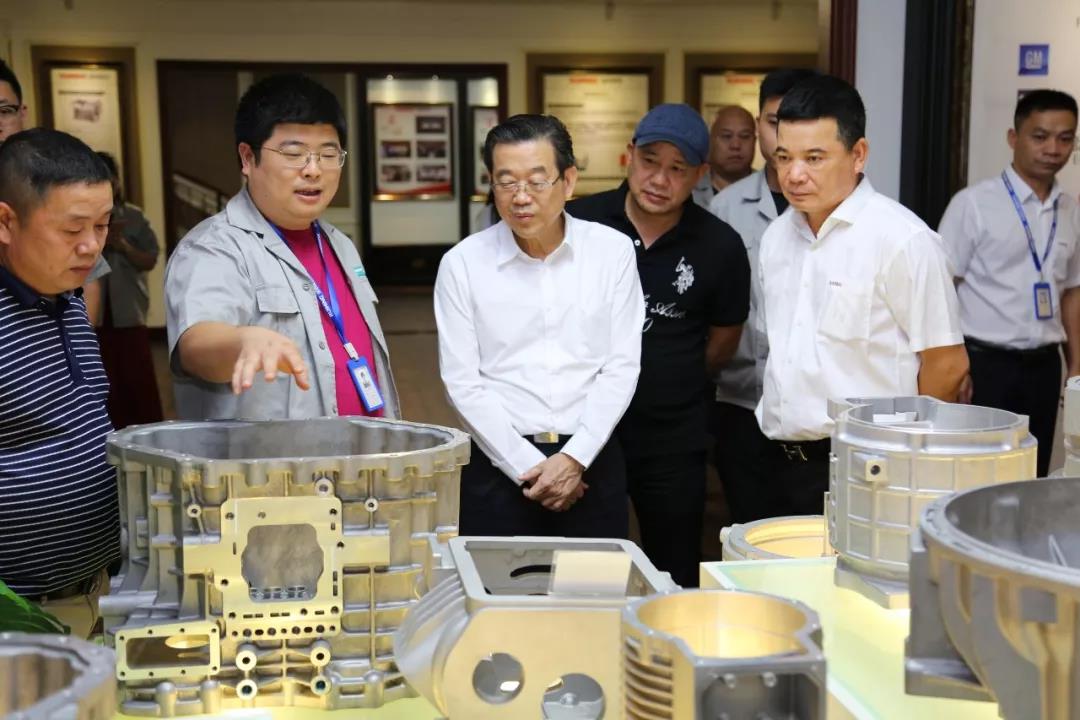 瑞明股份系國內(nèi)知名的汽車鋁鑄件生產(chǎn)商,力勁集團(tuán)系全球產(chǎn)銷量最大的壓鑄機(jī)生產(chǎn)商。在韓玉明董事長的陪同下,劉相尚一行先后參觀了瑞明股份企業(yè)文化展示廳、國家級企業(yè)技術(shù)中心、智能機(jī)加工廠以及裝備工廠等,詳細(xì)了解公司發(fā)展歷程、產(chǎn)業(yè)布局、技術(shù)研發(fā)等情況。