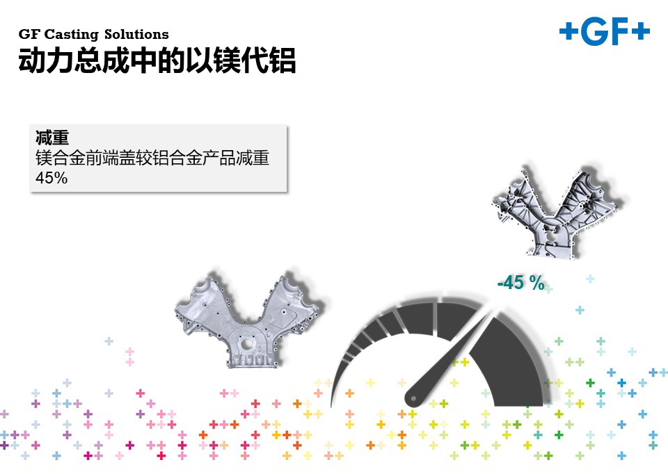 另外,GF喬治費歇爾還通過輕質的原材料來實現輕量化。運用GF專利的原材料、遴選性能優越的鎂合金來替代傳統的鋁合金來設計產品。如發動機前端蓋和導油模塊是首例運用抗蠕變鎂合金的產品。 劉伯禹先生表示:“近年來,隨著環保、節油、電動化成為汽車行業大趨勢,GF也致力于更多鎂合金的應用。在合適的部位運用對的原材料,一直為GF所倡導。GF目前應用鎂合金不僅于動力總成零件,其他新應用諸如底盤零件、車身結構件也不斷在擴展。”