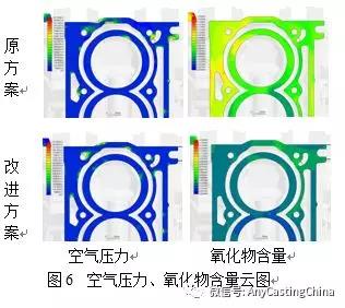 ![]() 摘要:本文采用數值模擬分析方法,利用AnyCasting鑄造模擬軟件對高壓件產品表面氣渣孔成因進行了探究。通過AnyCasting鑄造模擬軟件對鑄件充型過程進行分析,著重分析了充型過程中鋁液前端氧化物的形成過程,并輔助含氣量及空氣壓力判據進行分析。試驗結果顯示,當氧化物和含氣量共同作用與鑄件同一位置時,則形成加工表面氣渣孔的概率較大。 關鍵詞:數值模擬; AnyCasting; 氧化物 * 產品缺陷展示 如圖1~3所示,某缸體頂面加工面氣渣孔缺陷,在氣渣孔下方有氣孔出現,對缺陷件進行統計分析,其缺陷位置固定。此缺陷在第一次小批量生產中報廢率為5%,造成廢品率升高。由于該缺陷是氧化夾渣及氣體等缺陷共同作用的結果,所以在開發前期靠模流分析軟件中單一缺陷的評判標準是無法對氣渣孔位置進行準確定位的。因此我司此次利用氧化夾渣判據及氣體判據進行綜合評判,以形成判定標準,從而指導新產品的開發。