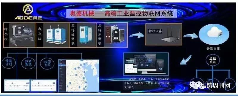 奧德智能溫控系統 2018國際(東莞)鑄業展,深圳奧德機械有限公司攜“智能物聯網壓鑄溫控島整體解決方案”及“溫控4.0”行業尖端溫控技術震撼“亮相”,系統涵括了:模溫加熱,鑄件點冷,制冷等全新一代優化集成溫控設備,軟件系統串聯引入互聯,全面實現遠程監控,自動、智能及數字化控制。高端的工業溫控物聯網系統,響應了新時代所倡導的工業智能溫控需求。