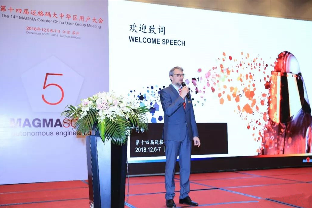 MAGMA中國總經理 馬修先生致歡迎詞 在致辭結束后,MAGMA新加坡總經理趙望前博士跟與會人員分享了參加MAGMA用戶大會的意義。邁格碼利用這個機會與用戶分享成功案例、使用技巧以及未來幾年里邁格碼軟件發(fā)展方向。