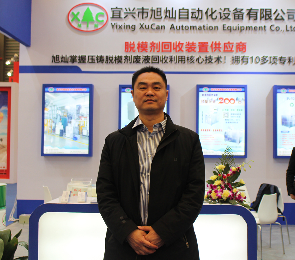 宜興旭燦總經理胡成軍先生 據介紹,宜興旭燦研發的脫模劑回收裝置,可以實現高品質回收、全自動配比,脫模劑廢液100%回收,降低40%-50%的脫模劑消耗量,幫助用戶企業實現節能、環保、零排放,助力壓鑄廠無污染和合規化生產。