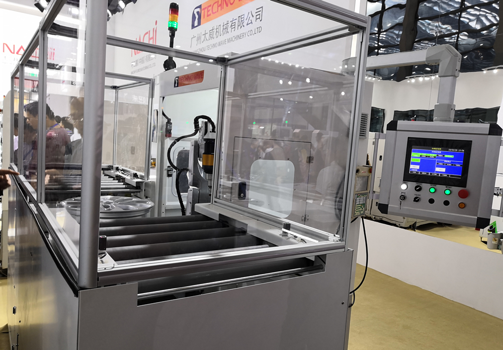 創新型立式加工中心(MT100) 克邁特車床類產品經典機型CNC系列,結合中小型精密部件市場需求,具有高效率、高剛性、移動速度快、負載小、加工精度穩定、使用壽命長;而TH系列在坐標驅動系統、主軸、刀塔、尾座整體都提高了剛性,在速度、高精度、穩定性等方面都具有很好的性能。為汽車、航空航天、石油鉆井、模具加工和軸承行業提供了高速高效、高精密的車削類機床。 廣州太威:提供專業自動化去毛刺系統及解決方案 廣州太威機械有限公司(“廣州太威”)攜通過式輪轂去毛刺標準機、柔性去毛刺加工中心、機器人標準單元B5C(電磁閥閥體去毛刺•清洗加工線)等多款全套去毛刺產品出展,為客戶在精密工業零件去毛刺、表面清潔提供一站式解決方案。