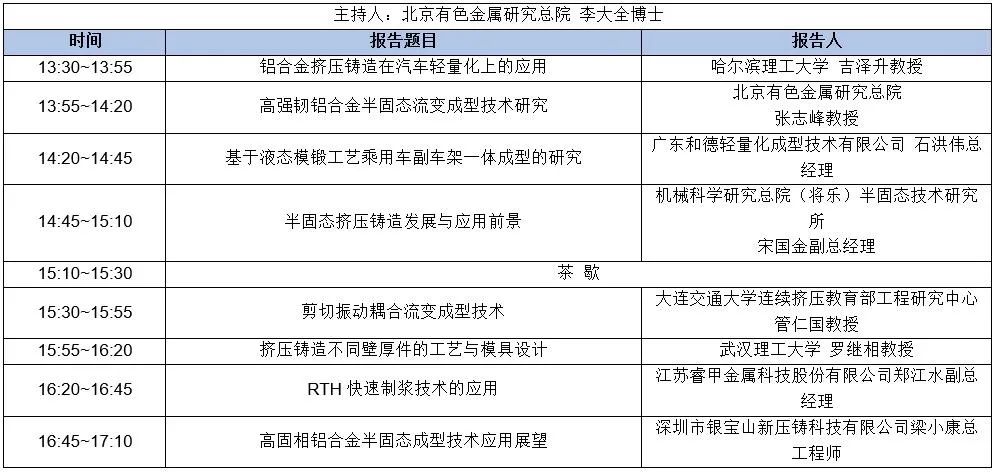 會場二:擠壓鑄造、半固態(tài)成形技術(shù)的發(fā)展與前景 三樓 浦江廳