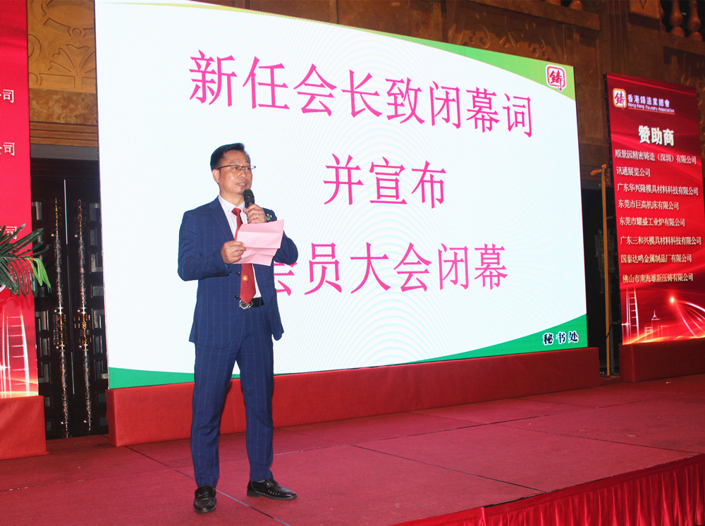 順景園精密鑄造(深圳)有限公司蔡子芳先生連任香港鑄造業總會新一屆會長。蔡子芳會長現場發表了熱情洋溢的當選感言。隨后,會員代表大會宣告結束,主辦方安排了豐盛的慶祝晚宴。