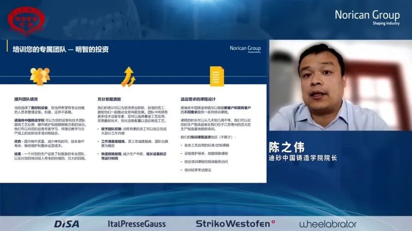 諾瑞肯以此次授牌為契機,也將進一步加大旗下迪砂鑄造學院培訓基地的建設。迪砂中國鑄造學院正式成立于2017年,學院能夠為客戶的設備和技術團隊提供工藝應用、操作維護和故障排除方面的培訓,將理論教學與生產線上的實際動手培訓相結合。迪砂中國鑄造學院可以根據客戶的不同需求提供一系列培訓課程。目前,學院開設的課程包括,設備維護專業培訓、工藝應用提升培訓等。同時還舉辦專場研討交流會,每年為鑄造行業培訓高端技術人才近千人。今后,迪砂鑄造學院會在相關政府部門與行業協會的領導和指導下,加強上下游產業鏈的資源整合,突出企業在全球領先高端鑄造設備方面的生產、研發、銷售、服務優勢,努力把培訓基地打造成一個管理創新、技術創新、人才創新的智慧平臺。
