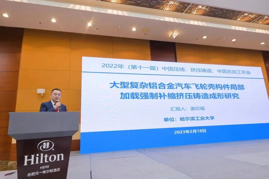 哈爾濱工業(yè)大學姜巨福教授以《大型復雜鋁合金汽車飛輪殼構(gòu)件局部加載強制補縮擠壓鑄造成形研究》為題作報告