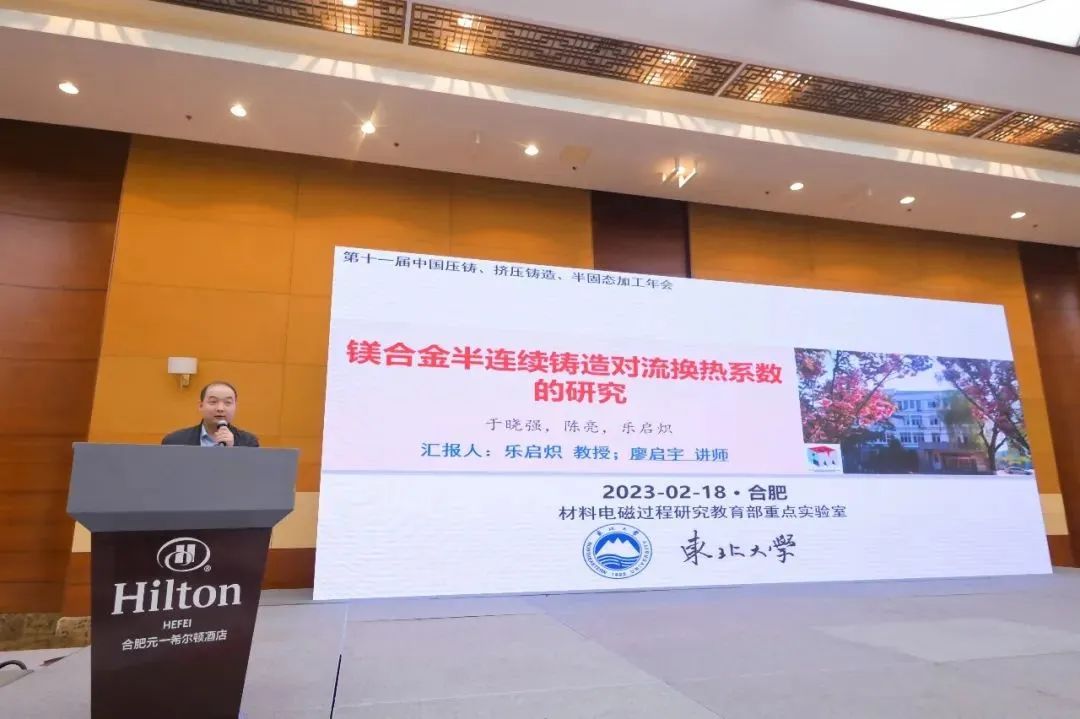 東北大學樂啟熾教授(廖啟宇,代樂啟熾?yún)R報)以《鎂合金半連續(xù)鑄造對流換熱系數(shù)研究》為題作報告