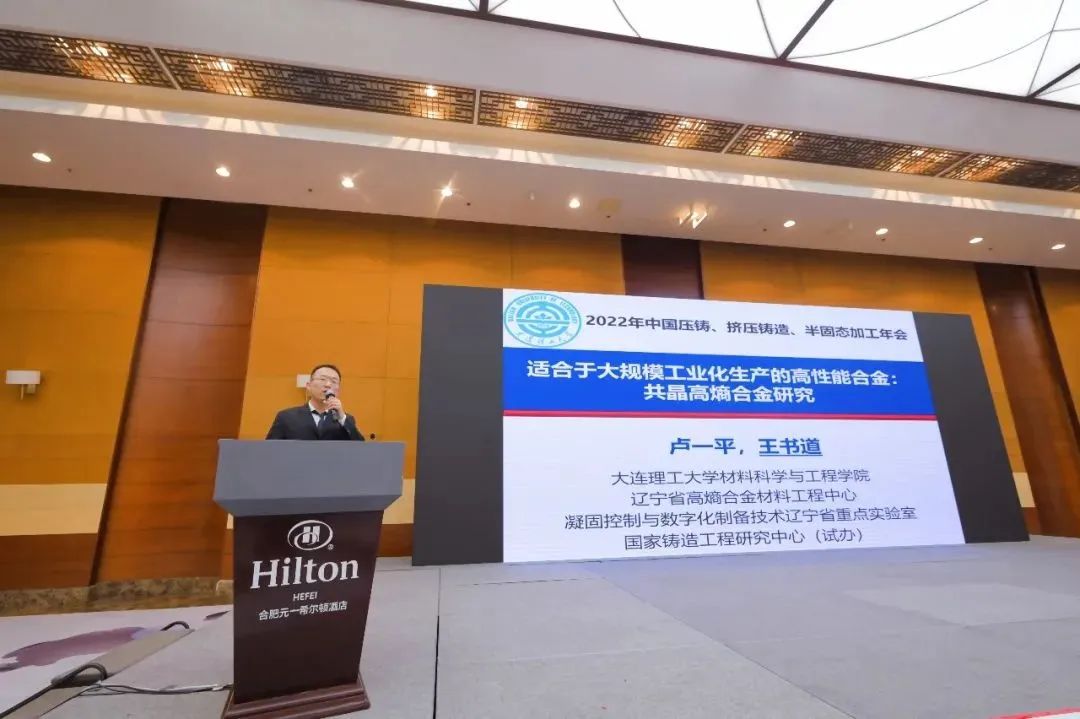 大連理工大學盧一平教授(王書道,代盧一平匯報)以《適合于大規(guī)模工業(yè)化生產(chǎn)的高性能合金:共晶高熵合金研究》為題作報告