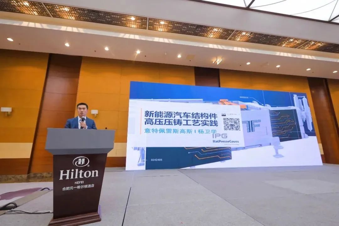 意特佩雷斯壓鑄(上海)有限公司經(jīng)理楊衛(wèi)學以《新能源汽車結(jié)構(gòu)件高壓壓鑄工藝智能應用實踐分享》為題作報告