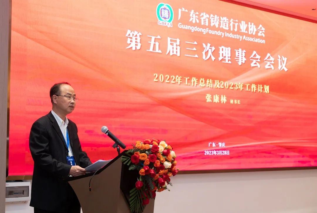 廣東鴻圖科技股份有限公司萬里教授作報告 報告結束后,廣東省鑄協張康林秘書長作“2022年工作總結及2023年工作計劃”。張康林秘書長從“發揮橋梁紐帶作用”、“發揮服務和導向作用”、“加強協會自身建設,承擔社會責任,提高會員服務能力”等方面回顧過去一年協會的工作。