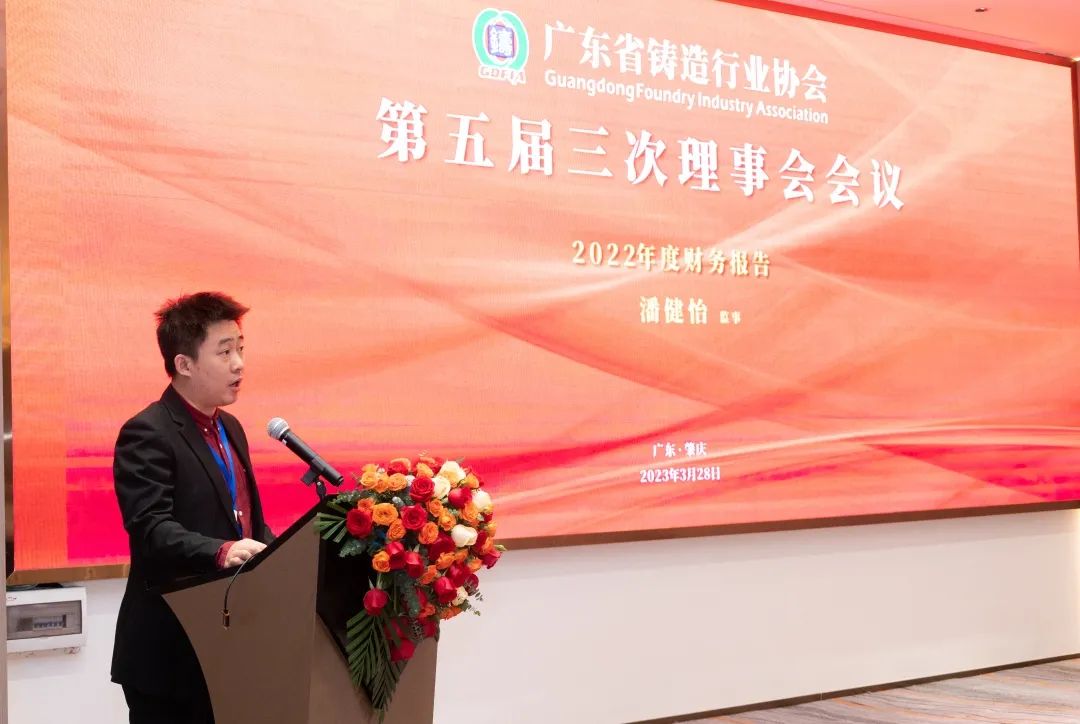 潘健怡監事受協會監事長孫遠波的委托作2022年財務工作報告 廣東省鑄協謝樹忠常務副會長作了“關于第五屆理事會人事調整變更”的說明,擬增選廣東巨高智能設備有限公司為協會副會長單位、公司負責人廖巨清為副會長單位代表人,廣東勝聯新材料科技有限公司為協會副會長單位、公司負責人蔡海林為副會長單位代表人,廣東創世紀智能裝備集團股份有限公司為協會理事單位、公司負責人羅育銀為理事單位代表人,廣東健潤科技股份有限公司為協會理事單位、公司負責人賈莉為理事單位代表人。