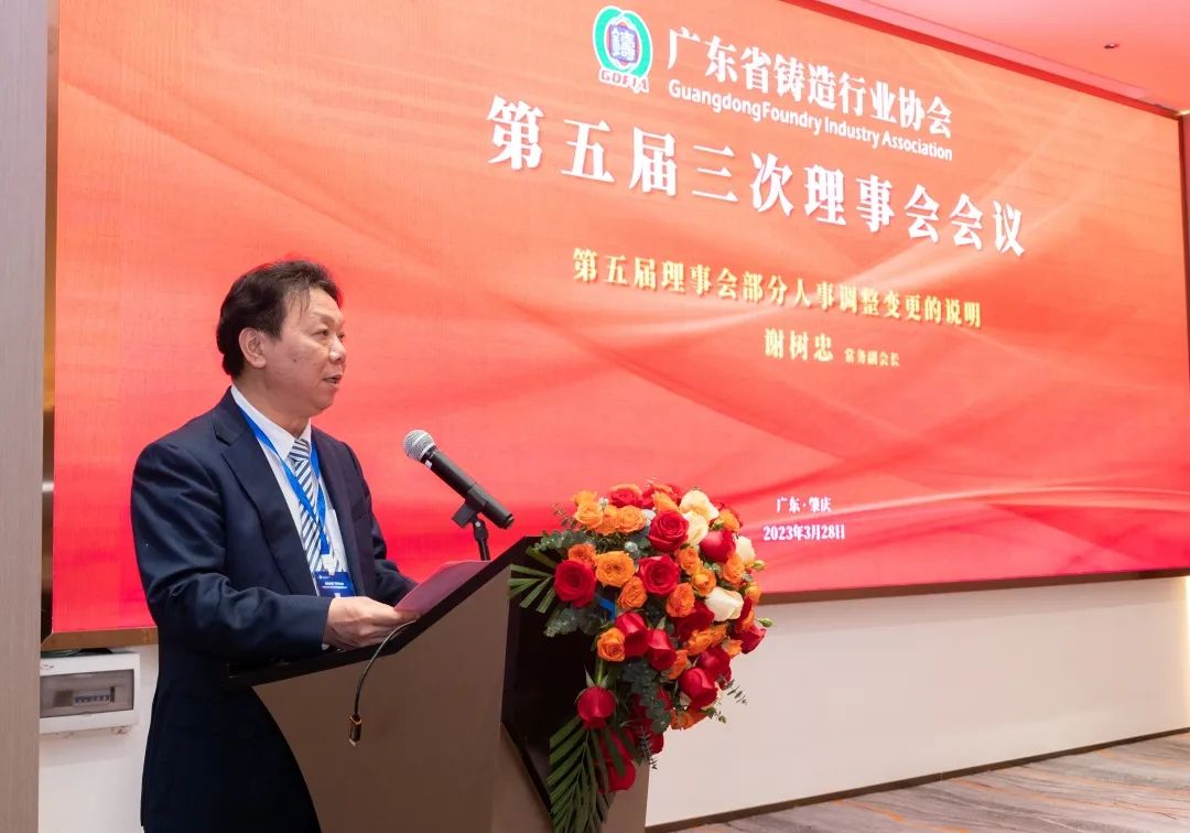 廣東省鑄協謝樹忠常務副會長作了關于第五屆理事會認識調整變更的說明 報告完畢,與會理事單位代表舉手表決通過了以上報告和決議。