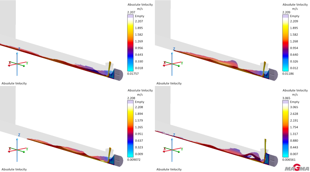 01創(chuàng)新技術(shù): MAGMASOFT®6版本在高壓鑄造壓射系統(tǒng)模擬上的DOE應(yīng)用 申報企業(yè):邁格碼(蘇州)軟件科技有限公司 02創(chuàng)新背景 伴隨著新能源汽車行業(yè)的快速發(fā)展,市場對大型結(jié)構(gòu)件的需求越來越大,尤其是大型一體化壓鑄件。隨著壓鑄產(chǎn)品尺寸越來越大,大型一體化壓鑄件產(chǎn)品對成型、質(zhì)量、性能的要求也越來越高。因此,大型一體化壓鑄件對壓鑄工藝控制的要求更高。 作為壓鑄工藝的第一階段,即從倒料、穩(wěn)料到慢壓射,料管內(nèi)的流態(tài)平穩(wěn)性、溫度變化、氣體包卷狀態(tài)等,對于大型一體化壓鑄件有著重要的意義。 MAGMA研發(fā)團(tuán)隊(duì)針對不同的倒料方式、不同的澆注量、不同尺寸的沖頭等工藝的需求,緊跟壓鑄市場的發(fā)展潮頭,與時俱進(jìn),在MAGMASOFT®6版本中開發(fā)了一套參數(shù)化的壓射系統(tǒng),便于用戶對高壓壓射工藝進(jìn)行DOE優(yōu)化。 03技術(shù)革新特點(diǎn) MAGMASOFT®6版本可以針對包含沖頭直徑、料管外徑、空打行程、沖頭厚度、沖頭冷卻長度、沖頭冷卻半徑、料餅厚度、料餅拔模斜度、灌湯口位置、澆料高度、Inlet偏移位置、澆料方向、澆料角度、澆料體積、澆料時間等在內(nèi)的整體壓射系統(tǒng)和過程,進(jìn)行DOE優(yōu)化模擬。