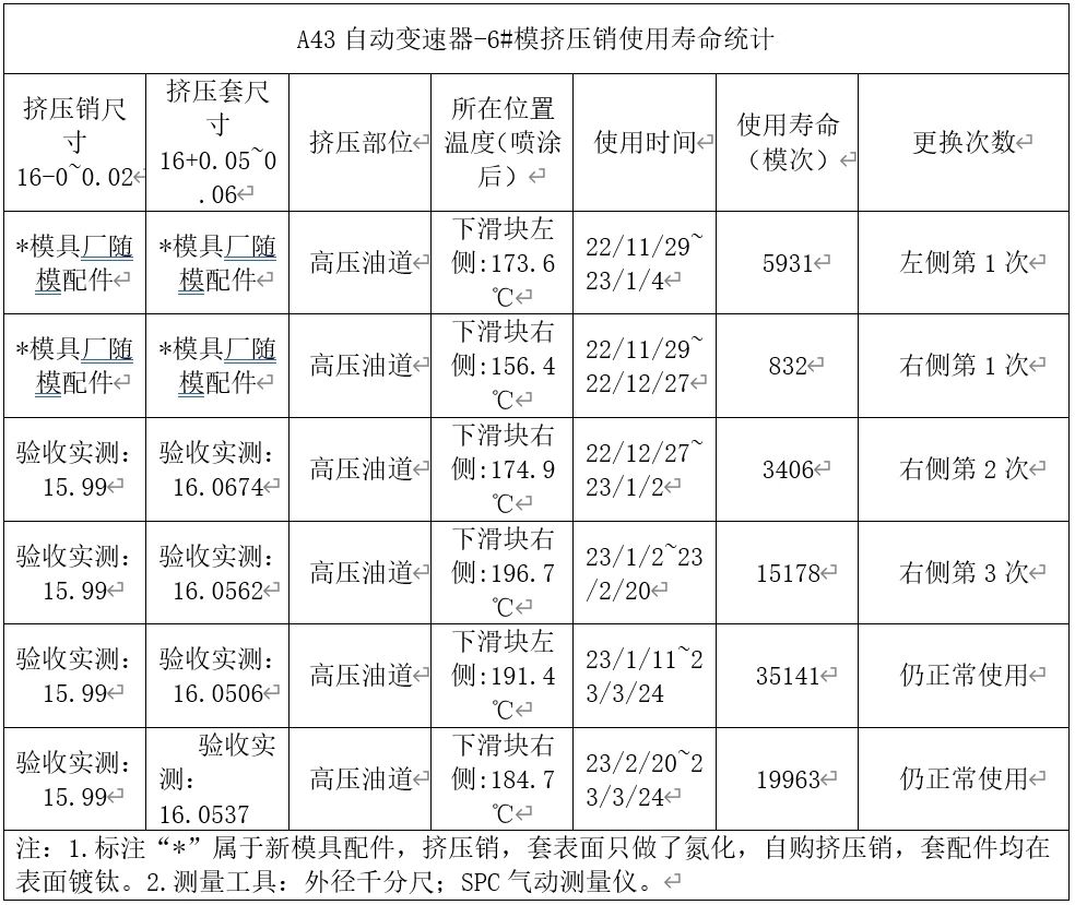 1)下“表4”是自動變速器左箱體模具擠壓銷的運用情況