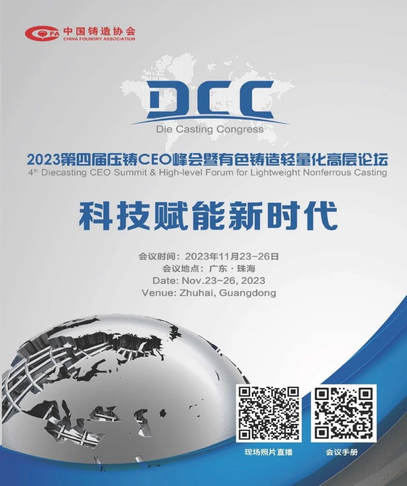 以“科技賦能新時(shí)代”為主題,由中國(guó)鑄造協(xié)會(huì)主辦的“2023第四屆壓鑄CEO峰會(huì)暨有色鑄造輕量化高層論壇”即將于11月23-26日在廣東珠海海泉灣維景國(guó)際大酒店舉辦。