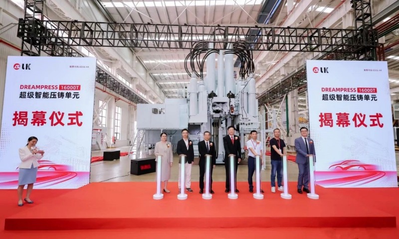 星源卓鎂向伊之密采購3200T鎂合金注射成型機 相比傳統(tǒng)鎂合金冷室壓鑄,鎂合金注射成型工藝更加環(huán)保、安全可靠,其鑄件產(chǎn)品力學性能更優(yōu),被廣泛應(yīng)用于汽車、3C、戶外出行工具等行業(yè)。更大噸位機型的推出,以及產(chǎn)業(yè)鏈企業(yè)(尤其是龍頭企業(yè))的大手筆投入,將加速鎂合金在以汽車為主的各行各業(yè)的應(yīng)用推廣,提升鎂合金在輕金屬領(lǐng)域的應(yīng)用比重。中國擁有全球超70%鎂資源。鎂是最輕的結(jié)構(gòu)金屬材料之一,鎂合金的密度僅為1.74g/cm³,比鋁合金輕30%,比鋼輕75%。如何將鎂合金用起來且用好一直是業(yè)界關(guān)注的熱點。 TOP 5 廣東鴻圖(廣州)壓鑄基地投產(chǎn),引進12000T、16000T壓鑄單元 2023年6月30日,廣東鴻圖汽車零部件有限公司【 廣東鴻圖(廣州)生產(chǎn)基地】投產(chǎn)儀式,在廣州市黃埔區(qū)小鵬汽車廣州零部件產(chǎn)業(yè)園舉行。儀式上,廣東鴻圖12000T、7000T超大型智能壓鑄單元正式投入生產(chǎn)。活動同期,廣州鴻圖還與力勁集團簽署16000T超大型壓鑄單元采購協(xié)議。