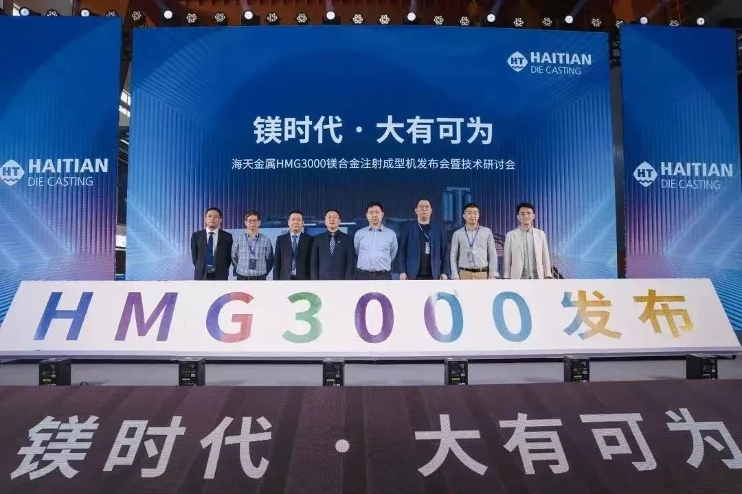 錫南科技登陸A股 另外,2023年2月27日上午,滁州多利汽車科技股份有限公司在深圳證券交易所主板上市,證券簡稱:多利科技,證券代碼:001311。多利科技成立于2010年,主要從事汽車沖壓件、壓鑄件及相關(guān)模具的開發(fā)、生產(chǎn)、銷售。2023年3月31日,無錫日聯(lián)科技股份有限公司首次公開發(fā)行股票并在上交所科創(chuàng)板上市。股票名稱:日聯(lián)科技,股票代碼:688531。日聯(lián)科技成立于2009年,主要從事高端X射線檢測儀器和裝備的研發(fā)、生產(chǎn)、銷售與服務(wù)。日聯(lián)科技的產(chǎn)品和技術(shù)廣泛應(yīng)用于壓鑄及鑄造行業(yè)。 TOP 4 大型半固態(tài)鎂合金注射成型機新突破,助推鎂合金材料應(yīng)用推廣 2023年5月12日上午,海天金屬HMG3000鎂合金注射成型機發(fā)布會在海天金屬保稅區(qū)基地舉行。HMG3000 鎖模力高達3000T(噸),最大螺桿直徑達到150mm,理論注射量超過10kg,是目前行業(yè)最大的半固態(tài)鎂合金注射成型機之一。使得鎂合金注射成型機的噸位由1000多噸躍升至3000噸。HMG3000為大尺寸鎂合金的多聯(lián)屏顯示背板、座椅骨架、車內(nèi)門板等產(chǎn)品的生產(chǎn)提供解決方案。