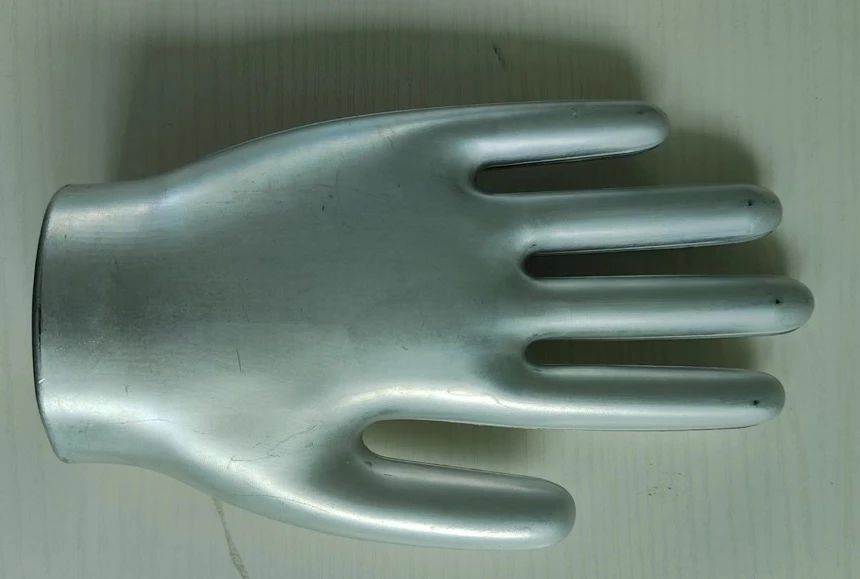 該產品為新能源智能重卡車身承載結構件,實現以鋁代鋼,減重達50%,鑄件采用液態模鍛工藝制備,進行T6熱處理強化,100%射線二級探傷。 零部件輕量化、集成化是目前行業發展趨勢。針對復雜形狀、力學性能和內部質量要求高的輕合金鑄件,在一些銷孔部位或壁厚變化較大的部位,仍易出現缺陷,限制了批產合格率的提升。在這樣的背景下,公司采用擁有自主知識產權的大型擠壓鑄造設備,通過定點強冷以及局部補縮等工藝優化,將金屬的充型控制與設備的操作系統進行適應性一體嵌入,為復雜結構高性能鋁合金零部件的高效制備提供支撐。 鑒賞鑄件二 鑄件名稱:手模