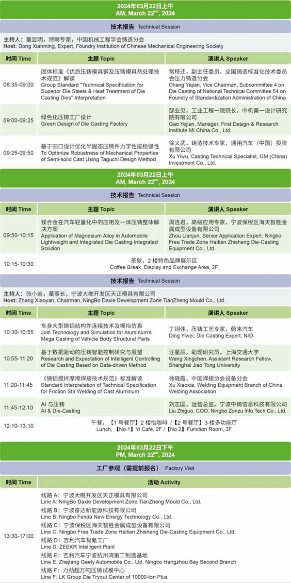 中泰壓鑄行業(yè)交流合作啟動儀式 大道智簡:一體化壓鑄工藝創(chuàng)新與優(yōu)化 寧波,作為全國壓鑄行業(yè)全產(chǎn)業(yè)鏈布局最為完善的產(chǎn)業(yè)集群區(qū)之一,在壓鑄裝備、模具、材料、CNC加工及周邊配套領(lǐng)域均形成了區(qū)域產(chǎn)業(yè)優(yōu)勢,打造了一條龍全產(chǎn)業(yè)鏈的特色發(fā)展模式。本屆會議以“大道智簡:一體化壓鑄工藝創(chuàng)新與優(yōu)化”為主題,聚焦行業(yè)熱點話題,本次有21位專家、學(xué)者聚焦壓鑄行業(yè)分析、合金材料開發(fā)及應(yīng)用、產(chǎn)品開發(fā)及集成計算材料工程、壓鑄裝備及集成技術(shù)等行業(yè)熱點話題展開分享,并與參會代表進行了深度的交流與探討。 主題技術(shù)演講