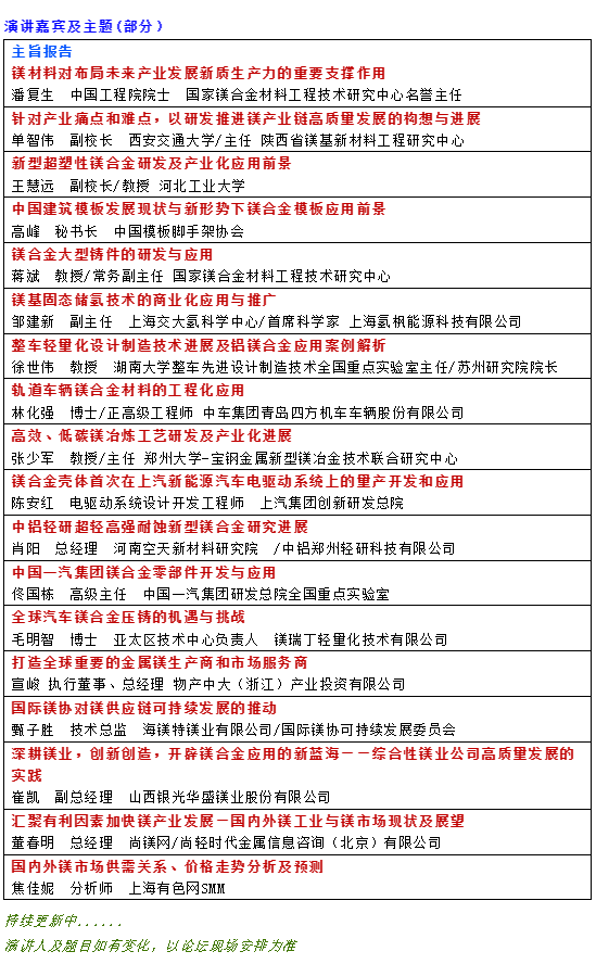 鎂業盛典 產業風標 持續更新中...... 論壇主題 打造可持續鎂產業鏈 構建高質量鎂價值鏈