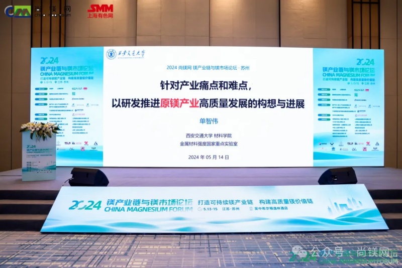 ![]() 5月13-15日,“2024鎂產業鏈與鎂市場論壇”在蘇州成功舉辦。本次論壇由尚鎂網、上海有色網聯合主辦,國家鎂合金材料工程技術研究中心特別支持,由寶武鎂業科技股份有限公司特別協辦,物產中大(浙江)產業投資有限公司、物產中大柒鑫合金材料有限公司、寧波保稅區海天智勝金屬成型設備有限公司協辦,蘇州市壓鑄技術協會特邀支持,并得到13家鎂產業鏈骨干企業的大力支持,鼎力共同搭建鎂產業鏈交流平臺。本次論壇的主題是:打造可持續鎂產業鏈,構建高質量鎂價值鏈。