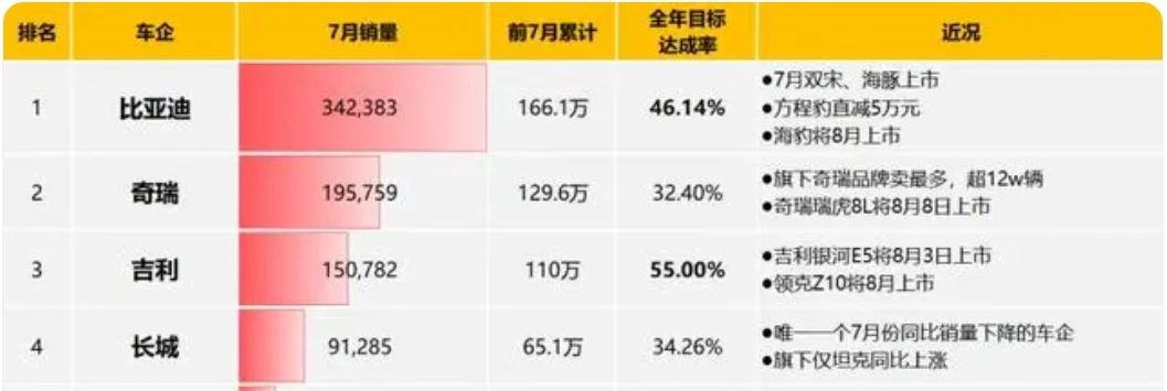 ![]() 中國新能源汽車市場在7月繼續展現出強勁的增長勢頭,各大汽車制造商紛紛公布其最新銷售數據。比亞迪再次以月銷量34萬輛的成績穩居榜首,顯示出其在國內市場的主導地位。與此同時,多家新興汽車品牌如理想汽車和小米汽車也呈現出顯著增長。 比亞迪:領航者的穩健步伐 比亞迪再次以34.24萬輛的月銷量傲視群雄,連續第五個月突破30萬輛大關,同比增長30.6%,穩固了其在國內新能源汽車市場的領先地位。尤為矚目的是,比亞迪在短短四個月內就實現了從700萬輛到800萬輛新能源汽車下線的壯舉,彰顯了其強大的生產能力和市場號召力。 理想汽車:新勢力中的佼佼者 在新興品牌陣營中,理想汽車以5.1萬輛的月交付量繼續保持新勢力銷冠的地位,同比增長49.4%。截至7月底,理想汽車累計交付新車已接近24萬輛,累計銷量更是突破了87.33萬輛,領跑中國新興汽車品牌。理想汽車的成功,不僅在于其出色的產品力和用戶口碑,更在于其精準的市場定位和前瞻性的技術布局。 小米汽車:新勢力中的新星 作為新晉勢力,小米汽車的表現同樣令人矚目。7月份,小米汽車交付量超過1萬輛,并有望提前至11月完成全年10萬輛的交付目標。這一成績的取得,無疑為小米汽車后續的市場表現奠定了堅實的基礎。此外,小米汽車還計劃推出其首款SUV產品,進一步豐富其產品線,滿足更多消費者的需求。 新勢力品牌百花齊放 除了理想汽車和小米汽車外,其他新勢力品牌也各有千秋。賽力斯以41,691輛的月銷量和617.33%的同比增長率成為市場關注的焦點;小鵬汽車雖然面臨新品斷檔的挑戰,但仍以11,145輛的交付量實現了同比和環比的增長;蔚來則以其穩定的市場表現,連續三個月銷量穩定在2萬輛以上,1-7月累計交付新車超過10萬輛。 傳統車企新能源轉型加速 在新能源汽車市場的熱潮中,傳統車企也加快了轉型的步伐。7月,奇瑞控股集團新能源銷量4.54萬輛,同比增長254.5%;今年1-7月累計銷售新能源汽車22.63萬輛,同比增長193.7%。吉利汽車新能源車型銷量達到5.9萬輛,領克與極氪品牌更是實現了顯著的銷量增長;長安汽車則以34.45萬輛的累計銷量和59.8%的同比增長率,展示了其在新能源汽車領域的強勁實力。這些傳統車企的轉型努力,不僅豐富了新能源汽車市場的產品選擇,也推動了整個行業的快速發展。