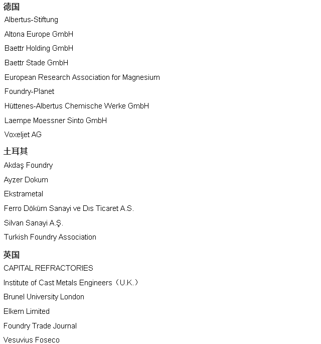 海外協辦單位: 國內合作媒體: 《鑄造》 《壓鑄周刊》傳媒 《特種鑄造及有色合金》 《中國鑄造裝備與技術》 《鑄造技術》 《鑄造設備與工藝》 《現代鑄鐵》 《鑄造工程》 《鑄造縱橫》 《鑄造世界報》 《壓鑄世界》 百鑄網 《消失模與V法鑄造》 FSC跨國鑄造采購平臺 洲際鑄造 鑄造產經網 《大型鑄鍛件》 國際合作媒體: CHINA FOUNDRY Foundry Trade Journal Foundry-Planet Foundry Review (Przegl?d Odlewnictwa) Romanian Foundry Journal Livarski Vestnik Global Casting International Journal of Metalcasting(IJMC) |