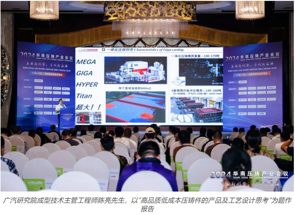 2024年11月7日-8日,“2024華南壓鑄產業會議”在深圳維納斯皇家酒店隆重舉行。本次會議由行業知名媒體《壓鑄周刊》傳媒主辦,以“直面新形勢,尋找新藍海”為核心議題,旨在匯聚全國壓鑄行業的優質資源,打造華南地區壓鑄界一流的交流平臺。 來自行業學會/協會領導、壓鑄產業鏈上下游企業及汽車等應用終端企業代表及專家、科研院校專家教授、專業媒體記者等450余名專業人士齊聚一堂,共襄盛舉。主辦方精心設計了一系列豐富精彩的活動,包括主題報告演講、鎂合金技術專題論壇、對話行業領袖圓桌訪談、汽車鑄造俱樂部活動、特色品牌展示、交流晚宴、名企參觀等,旨在通過專業會議平臺,匯聚全行業的力量,共同探討當前形勢下壓鑄企業未來的發展方向。