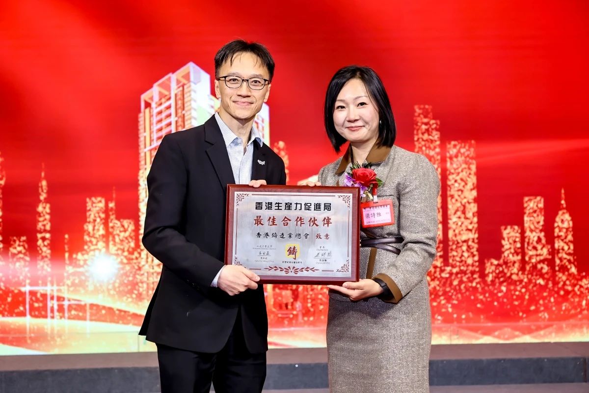 此外,典禮上,梁詩雅會長向香港生產力促進局智能制造部總經理孫國偉工程師頒發了“最佳合作獎”;周強司長恭賀力勁集團創始人劉相尚榮獲SAC/TC186“鑄造機械標準化工作終身成就獎”、祝賀嘉瑞集團李遠發主席榮獲“全國標準化機械終身成就獎”。同時,為了感謝香港鑄造業總會永遠名譽主席姜永正博士在《壓鑄工程師實用教程》中的特別貢獻,張立波會長還為他頒發了感謝盾牌。以表彰他們在推動鑄造業發展中所作出的突出成就。