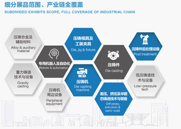 在京津冀協(xié)同發(fā)展戰(zhàn)略的引領(lǐng)下,天津汽車及新能源汽車產(chǎn)業(yè)正以前所未有的速度發(fā)展,形成了強(qiáng)大的產(chǎn)業(yè)鏈集群效應(yīng),并以高端形象面向全國市場。 ·品牌展會優(yōu)勢· 作為國內(nèi)壓鑄&有色領(lǐng)域的品牌展會,“中國國際壓鑄&有色展”匯聚了來自海內(nèi)外的壓鑄有色及上下游杰出企業(yè),將全面展示鑄造輕量化發(fā)展的新產(chǎn)品和新工藝,交流新技術(shù)和新理念,促進(jìn)行業(yè)的創(chuàng)新與發(fā)展。 涵蓋有色鑄造全材質(zhì)·全工藝·全產(chǎn)業(yè)鏈