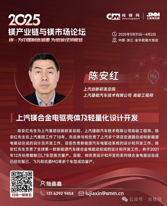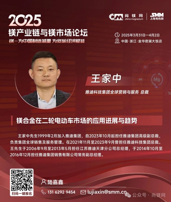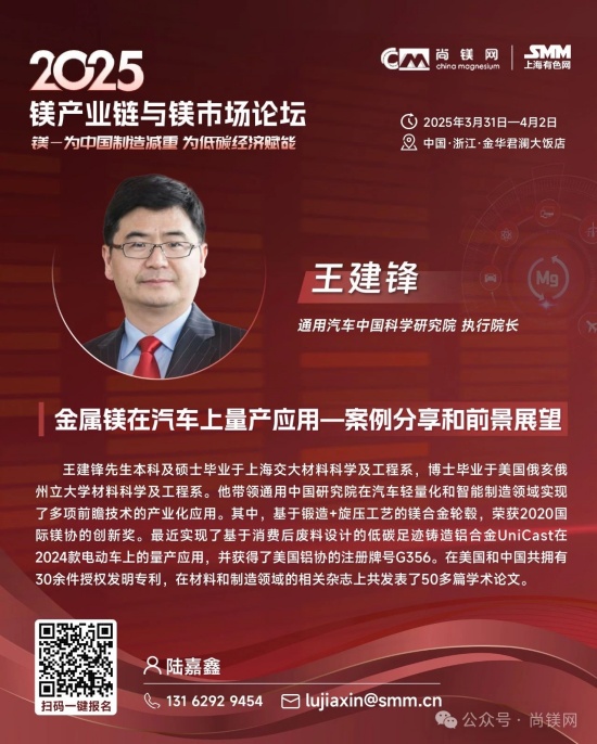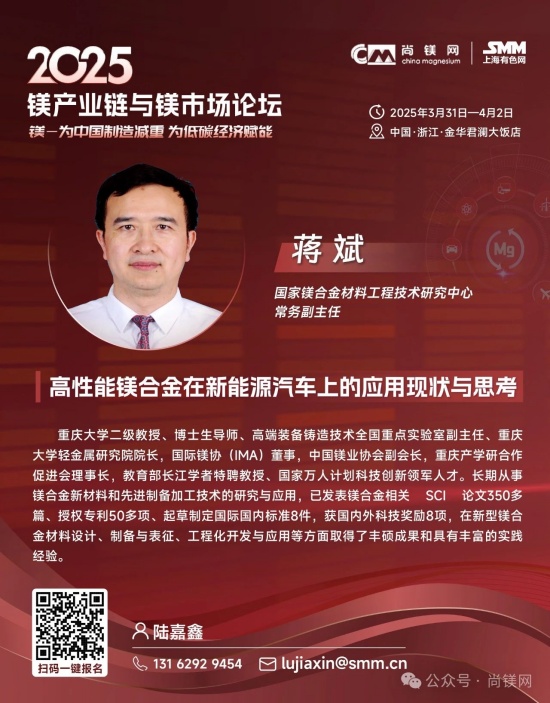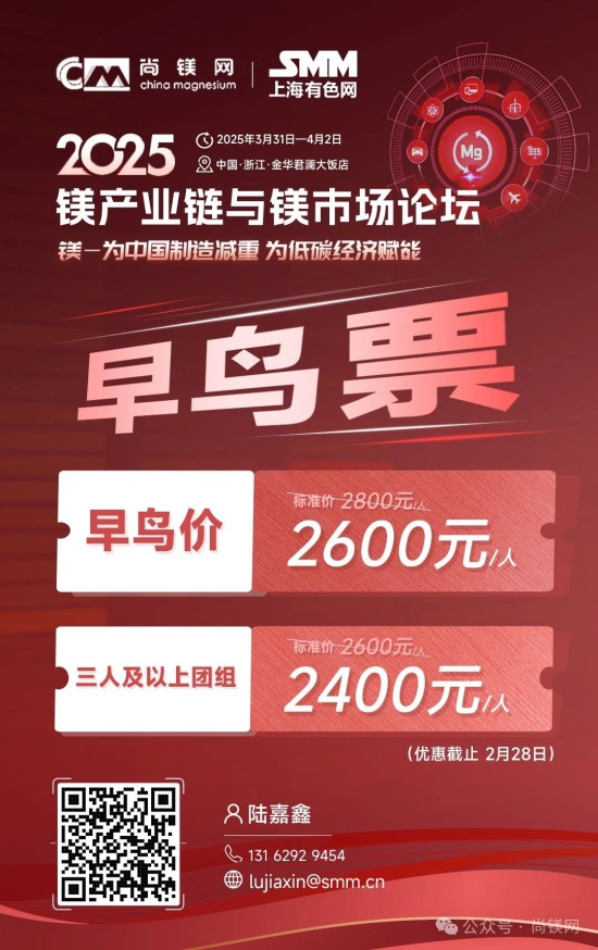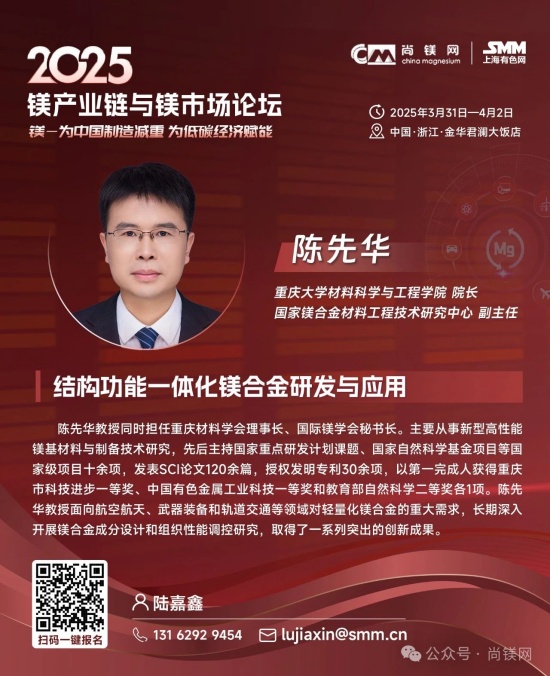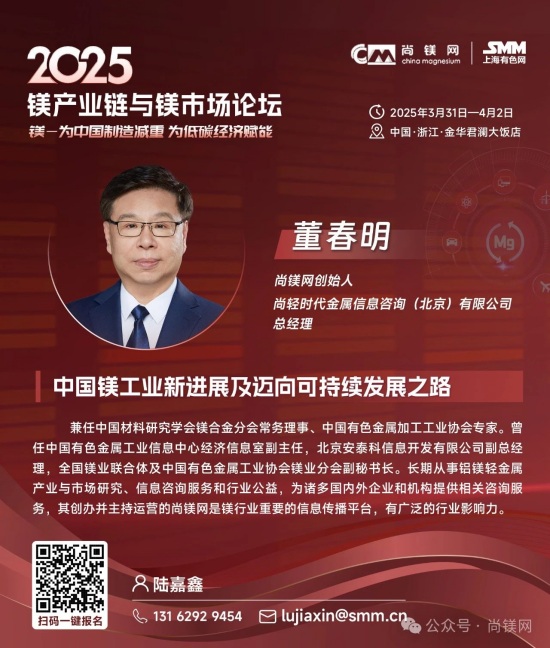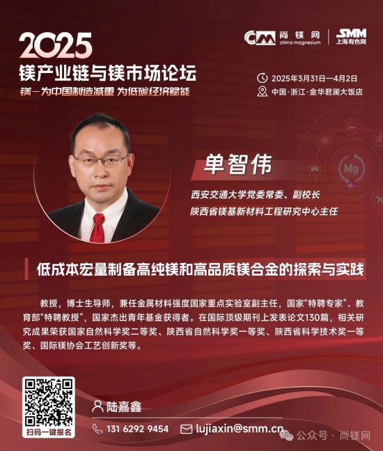 同時,考量鎂鋁比價關系及走勢及制訂材料選型替代戰略,還要更多的關注鋁及其他相關原材料市場的形勢。值得關注的是,2024年,受資源條件約束、環保及安全生產等因素影響,國內鋁土礦產量降幅進一步擴大。受此影響,國內氧化鋁企業加大進口鋁土礦使用量,鋁土礦進口再創新高,2024全年進口量達到1.56億噸。同時,鋁土礦進口價格不斷攀升,進口均價同比上漲8.4%,創近20年新高。因國產鋁土礦供應下降,國內鋁土礦資源對外依存度上升至68%,較上年提高6個百分點。而我國鎂的資源狀況極佳,不僅完全不需要進口鎂資源和鎂金屬,中國鎂產量占世界總產量的比例超過86%,具有明顯的資源優勢、產業優勢、供應優勢和價格優勢。 這一系列形勢應該能引發產業界進一步思考,在原材料風險評估和材料選擇時,要更加關注資源和原材料供應的可靠性及供應鏈的安全性問題,要更多的從戰略高度和商業角度考慮如金屬鎂這樣的國內資源保證條件好的資源與材料的應用,加大對此類產業和產業鏈的支持力度,從戰略高度增強信任,構建新型商業合作關系,構建更加穩固可靠的新型和優勢產業鏈。 中央經濟工作會議突出強調:“要更好統籌發展和安全,必須統籌好總供給和總需求的關系,暢通國民經濟循環。必須統籌好培育新動能和更新舊動能的關系,因地制宜發展新質生產力。必須統籌好做優增量和盤活存量的關系,全面提高資源配置效率。必須統籌好提升質量和做大總量的關系,夯實中國式現代化的物質基礎。” 結合當前鎂行業及鎂市場形勢,我們認為,在2025年要重點抓好金屬鎂的規模化應用這一大課題,這不僅是有效解決當前行業困境的當務之急,也是貫徹落實中央經濟工作會議精神,統籌發展和安全、提高資源配置效率、擴大內需,更新舊動能和培育新動能的重要行動措施。金屬鎂作為輕量化結構材料和功能材料,在推動綠色低碳、高質量發展中將發揮重要作用,展現更大作為。目前,開展這項工作的環境和條件已經基本具備,重點和方向也已經明晰,所要做的就是凝心聚力,努力實踐了! 我們相信,鎂市場需要決定性力量,決定性力量還要來自于市場。在這一關鍵時刻和重要節點,尚鎂網與上海有色網SMM在國家鎂中心、中國材料研究學會鎂合金分會等單位及產業鏈骨干企業的大力支持下,將于今年3月31日-4月2日在浙江金華再次舉辦“鎂產業鏈與鎂市場論壇”,本次論壇的主題為“鎂—為中國制造減重,為低碳經濟賦能”。主辦方誠邀鎂產業鏈、鋁產業鏈同仁共聚浙江金華,共同探討鎂材料在推動中國制造輕量化、促進低碳經濟發展方面的重要作用。我們相信,通過本次論壇的交流與探討,將進一步推動鎂材料在更多領域的應用,支持在金華打造“鎂好蘭溪科創地”,在春暖花開之際,掀起新一輪鎂產業和鎂市場發展的澎湃春潮。為中國制造減重,為低碳經濟賦能。 2025鎂產業鏈與鎂市場論壇一經啟動,首批鎂產業鏈終端用戶及品牌商已經注冊參會,包括:賽力斯汽車、中國一汽、長安汽車、東風汽車、上汽集團、比亞迪、吉利汽車、廣汽集團、北汽集團、通用汽車、蔚來汽車、哪吒汽車、理想汽車、小米汽車、極氪汽車、陜汽集團、零跑汽車、奧迪汽車、質子汽車、捷豹路虎、大眾汽車、小鵬汽車、智己汽車、深藍汽車、華為終端、華為海思光電子、華碩科技、傳音控股、惠普公司、愛立信、雅迪科技、納恩博(9號公司)、中車集團、中航工業、瑞美熱水器(Rheem)、英洛華康復器材、圣雪休閑用品等知名企業......下游用戶對鎂及鎂合金關注度明顯提高。 期待您的光臨! 2025鎂產業鏈與鎂市場(金華·蘭溪)論壇 CHINA MAGNESIUM FORUM 2025 2025年3月31日—4月2日 地點:浙江省金華市 特別支持 國家鎂合金材料工程技術研究中心 中國材料研究學會鎂合金分會 國際鎂業協會 聯合主辦 尚鎂網 上海有色網SMM 特別協辦 蘭溪市鎂材料研究院 協辦單位 物產中大(浙江)產業投資有限公司 物產中大柒鑫合金材料有限公司 寧波保稅區海天智勝金屬成型設備有限公司 支持單位 青陽縣人民政府 山西瑞格金屬新材料有限公司 山西銀光華盛鎂業股份有限公司 山西八達鎂業有限公司 河南明鎂鎂業科技有限公司 勵展博覽集團 重慶材料學會...... 論壇主題 為中國制造減重 為低碳經濟賦能 已確認的部分演講嘉賓