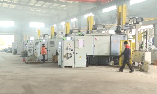 在日晉壓鑄的生產(chǎn)車間,壓鑄設(shè)備已實(shí)現(xiàn)較高的自動(dòng)化生產(chǎn),菱沼壓鑄機(jī)配置自動(dòng)給料系統(tǒng)、自動(dòng)噴霧系統(tǒng)、壓鑄件毛坯傳送帶、水口料返熔輸送系統(tǒng)等,組成高度自動(dòng)化壓鑄及去毛刺生產(chǎn)線。